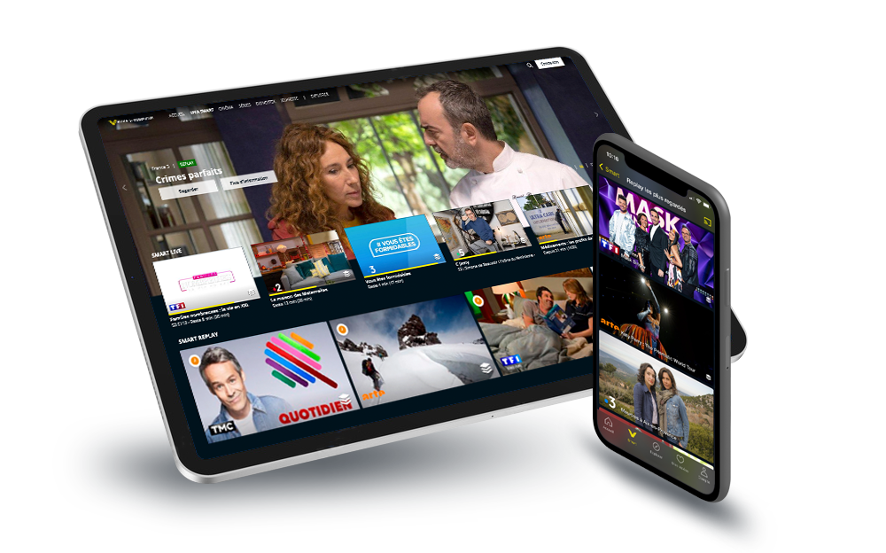 Accessible depuis PC/Mac, smartphone, tablette (appli iOS ou Android) et sur votre TV via Android TV, Apple TV ou Chromecast – retrouvez en 1 clic l’ensemble de vos programmes et profitez-en à tout moment sur l’ensemble de vos écrans.